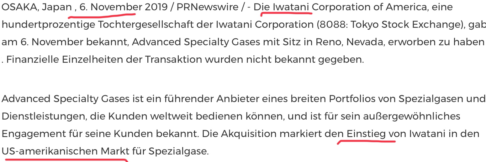 19.11.19 08:14 #720 ITM u Iwatani: Kooperationsvertrag für Nordam.