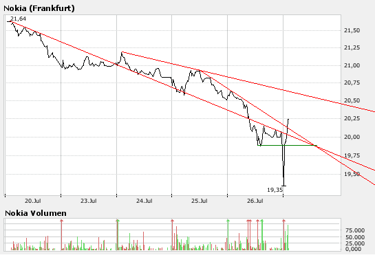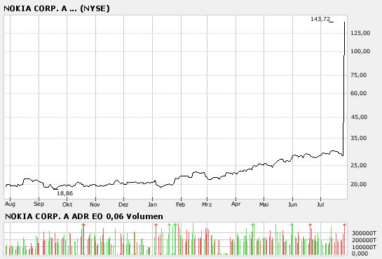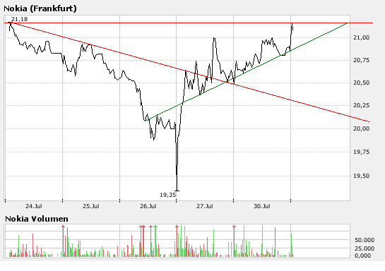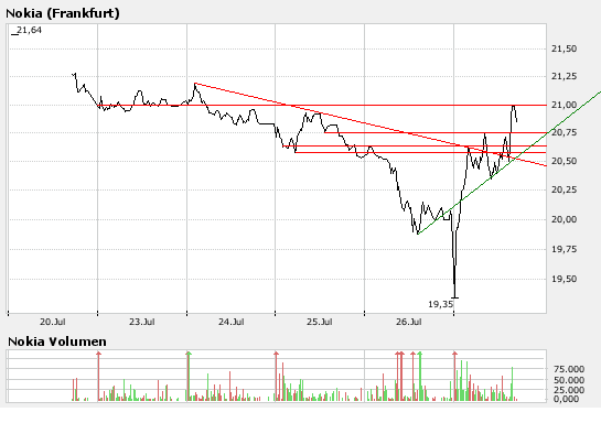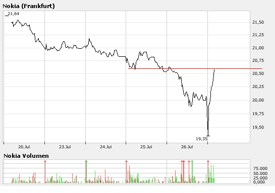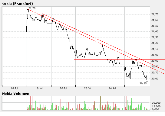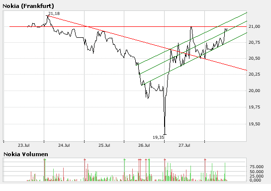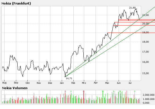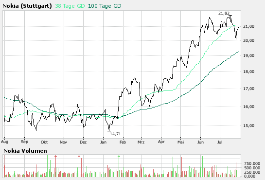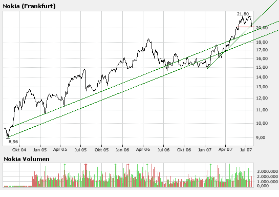 Die Analysten der SEB bewerten die Nokia-Aktie mit dem Anlageurteil "buy", sie seien vom Wachstumspotenzial dieser Aktie überzeugt und erhöhen das Kursziel von 21 EUR auf 25 EUR. (Analyse vom 26.07.2007) (26.07.2007/ac/a/a)