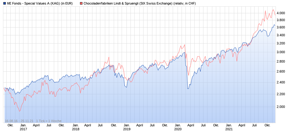 Der ME Fonds – Special Values A (ISIN: LU0150613833) von Dr. Markus Elsässer ist ein flexibler Mischfonds, der auf langfristigen Kapitalzuwachs durch Investitionen in Qualitätsaktien abzielt. Seit seiner Auflage im Juli 2002 erzielte der Fonds eine durchschnittliche jährliche Rendite von über 7 % und verzeichnete nur drei Verlustjahre, wobei der größte Rückgang während der Finanzkrise 2008 bei etwa 15 % lag .(fondsdiscount.de, dasinvestment.com)