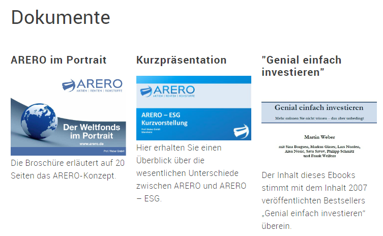 ARERO – Der Weltfonds proklamiert für sich, eine wissenschaftliche Form der Geldanlage zu sein. Die Aufteilung in 60 % Aktien, 25 % Anleihen und 15 % Rohstoffe habe „in der Vergangenheit oft besser abgeschnitten als komplexe Optimierungsansätze“.