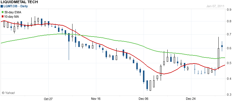 Liquidmetal ® Technologies Berichte Erhöhung der Quartalsumsatz auf $ 17,3 Millionen für das dritte Quartal 2010 Datum: 2010.11.04 @ 16.00 Uhr Quelle: Business Wire Stock: Liquidmetal Technologies Inc. (LQMT) Zitat: 0,65 -0,049 (-7,01%) @ 03.57 Uhr Liquidmetal ® Technologies Berichte Erhöhung der Quartalsumsatz auf $ 17,3 Millionen für das dritte Quartal 2010 Liquidmetal Technologies, Inc. Stammaktien (OTCBB: LQMT) Intraday Chart Heute: Donnerstag, 4 November 2010 Liquidmetal® Technologies Inc. (OTCBB: LQMT) meldete heute seine Finanzergebnisse für das Quartal zum 30. September 2010. Für das dritte Quartal Company berichtet die Einnahmen von $ 17.300.000 Erreichung A 686% gegenüber dem Vorquartal. Der Umsatzanstieg war vor allem auf die Anerkennung eines Teils einer Lizenzgebühr für ihre Technologie. Das Unternehmen schloss das Quartal mit $ 12.900.000 des betrieblichen Ergebnisses.