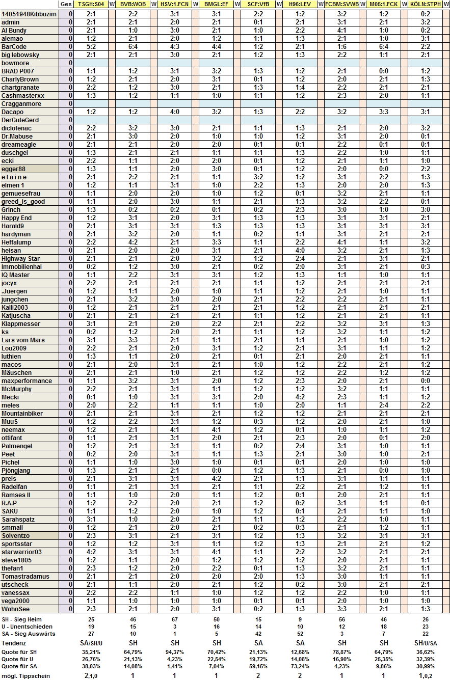 och, braucht Happy nich, was zahlen - oder doch? Naja, ein Mönchengladbachwappen in seiner Tabelle wär schon supi *g*. So arg Arbeit ist das nicht. Das geht eigentlich immer ganz fix.. Ma muß halt nur immer die im Auge behalten die zwischendurch mal abstinent sind, aber 3-4Spieltage im voraus getippt haben ks zB u.a.. Bin eh so n Statistikfreak..