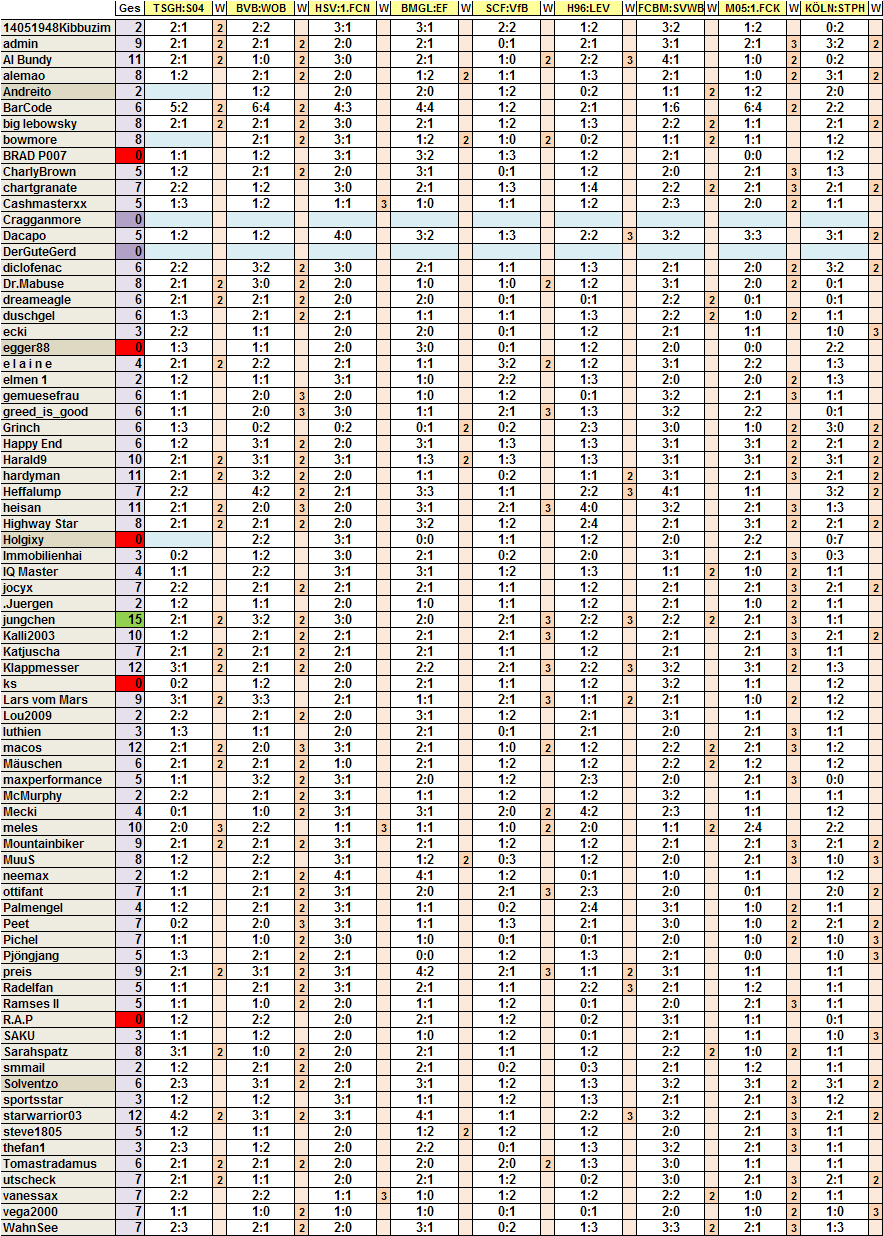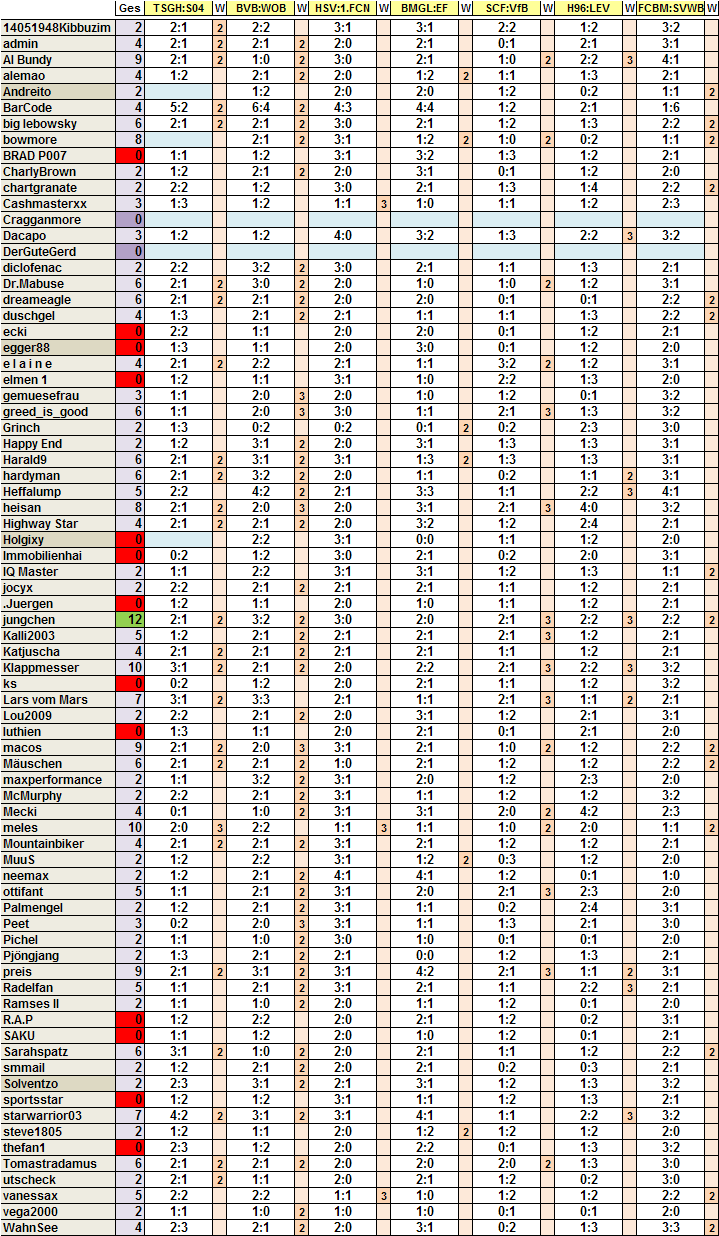 Wird heut Abend eh wieder später, da wieder mal das WE Spätschicht hab 14-22Uhr.. Au Happy, dat gibt Arbeit - jetzt 73 Tipper für Spieltag 3!!