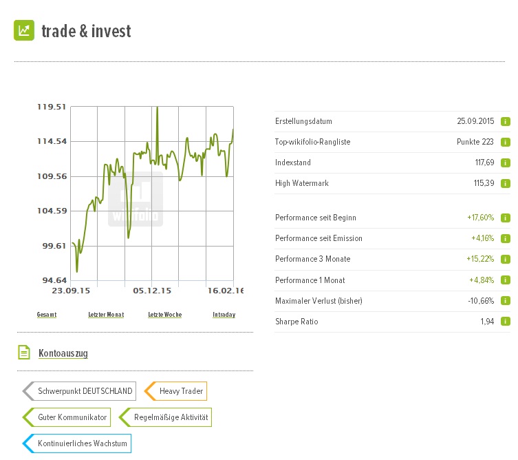 Das wikifolio-Depot kann somit flexibel auf die Märkt reagieren, bleibt aber vorerst defensiv aufgestellt. Eine eventuelle Bodenbildung wird abgewartet. Das positive Delta zum Gesamtmarkt (Dax), konnte erfreulicherweise weiter vergrössert werden.