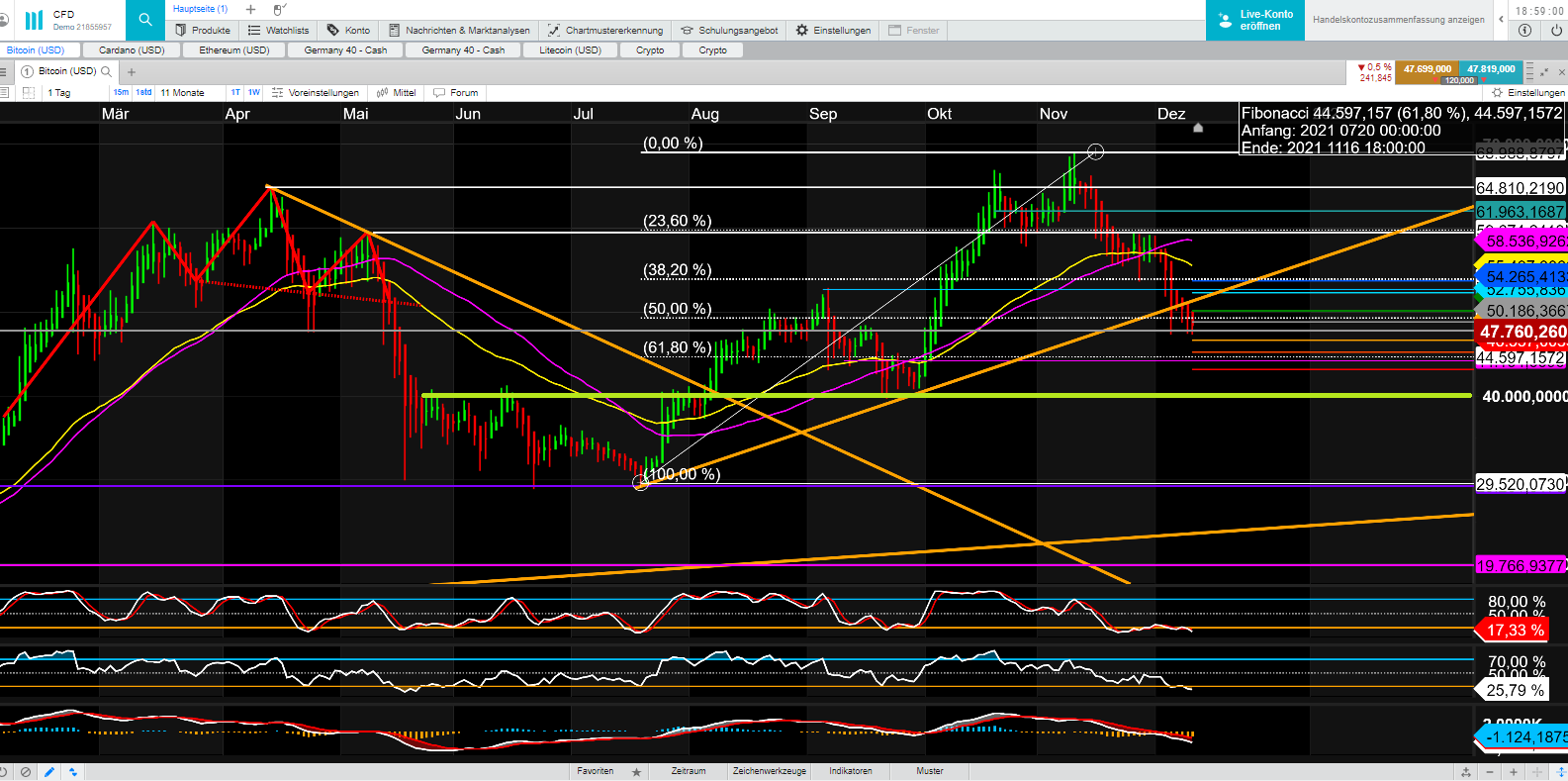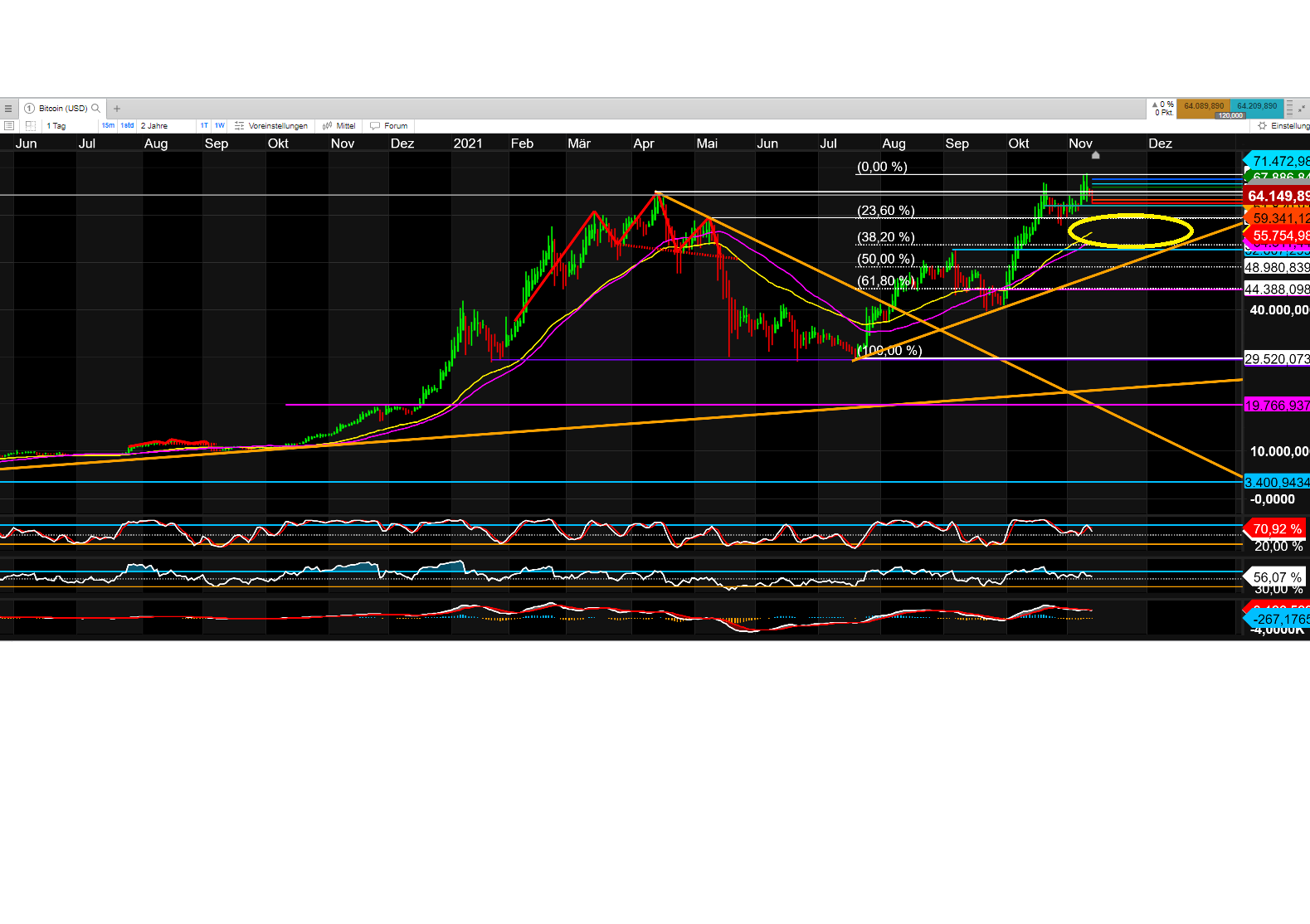 Ich persönlich setze aktuell noch darauf, dass wir maximal bis in den Bereich 53.900$ ggf. noch die 49.200$ erreichen werden, bevor wir wieder auf die Höchststände laufen. Aus langfristiger Sicht bin ich bereits ungehebelt LONG beim Bitcoin. |