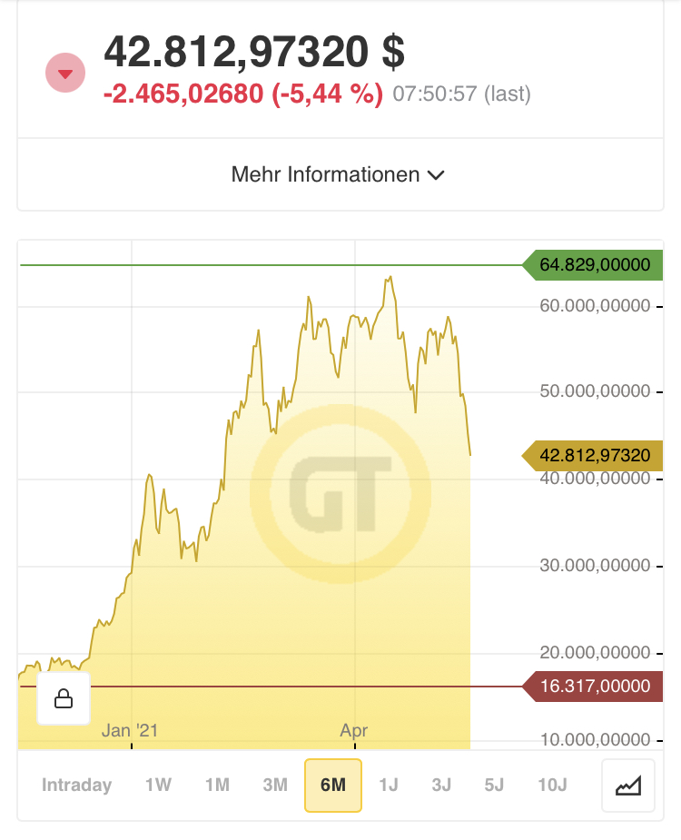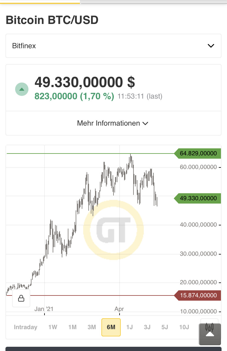 Als Bestätigung wünsche ich mir nochmal einen Rücklauf bis in den Bereich 30.000$. Fraglich bleibt, ob er dann Richtung Norden läuft, oder doch in Richtung - ich nenne es mal "Gap-CLose" in dengroben Bereich um 23.000$ abtaucht, oder sogar das 100%ige Retracement im Bereich 10.000$ sucht.