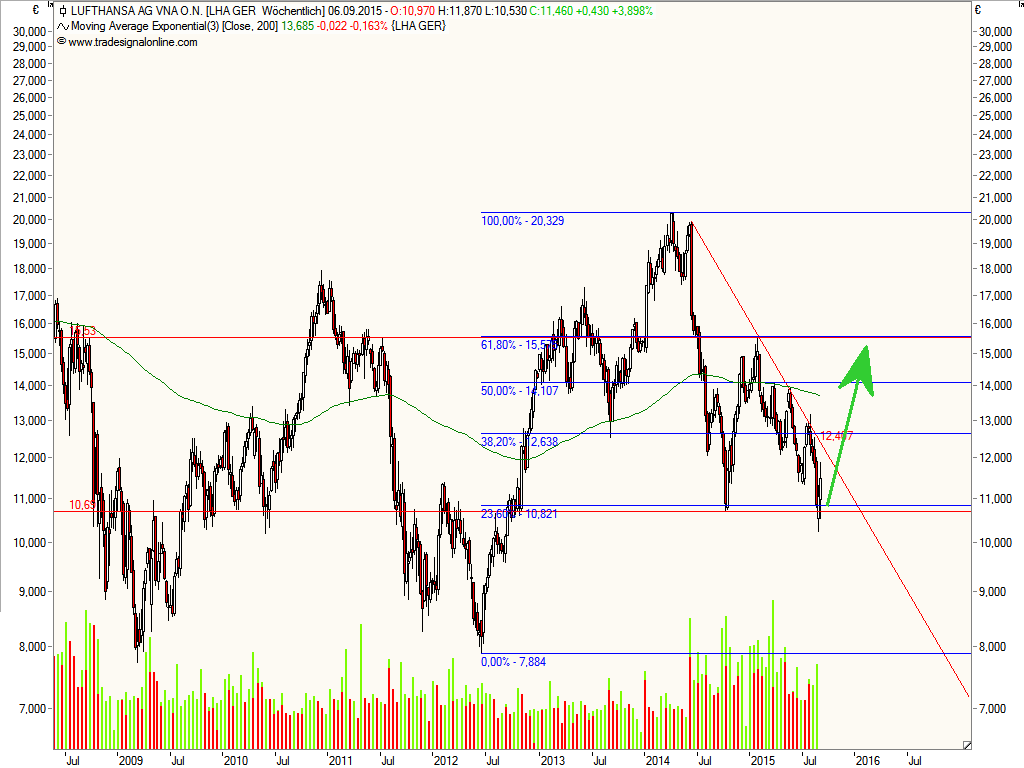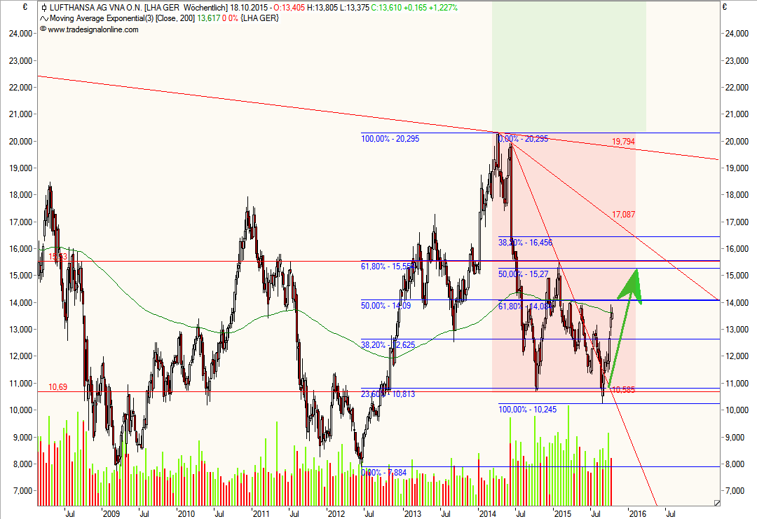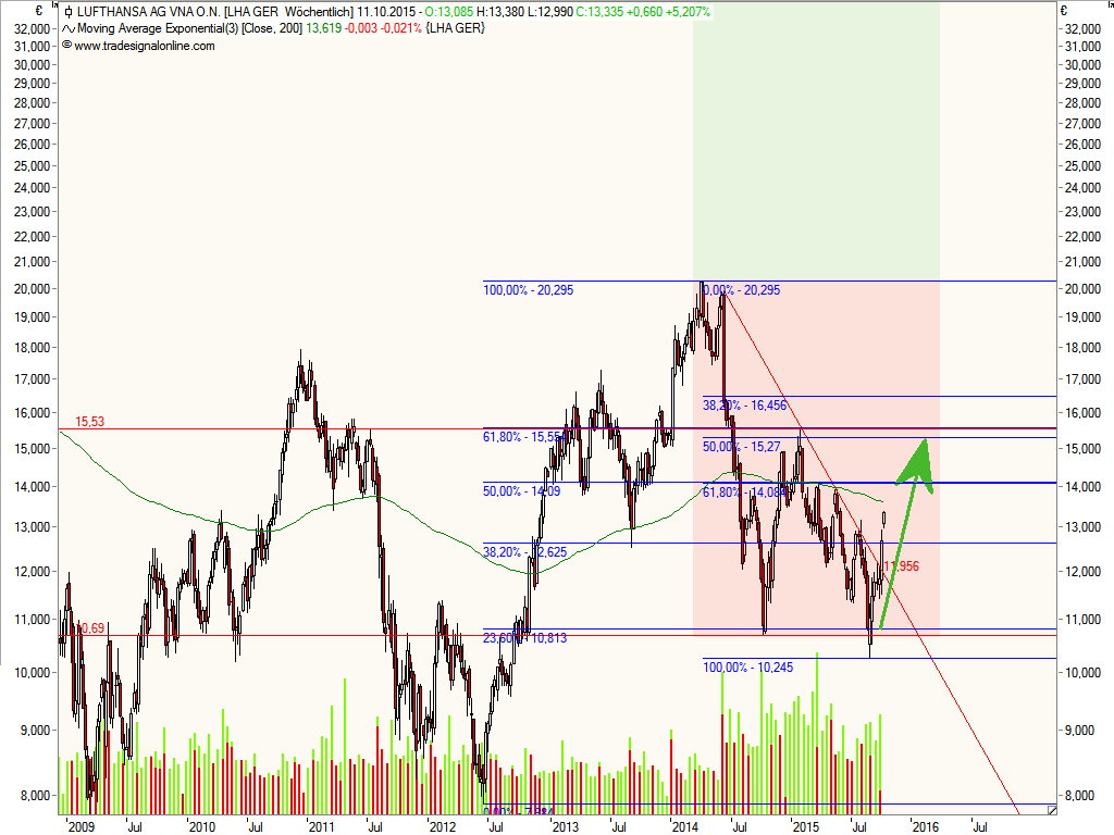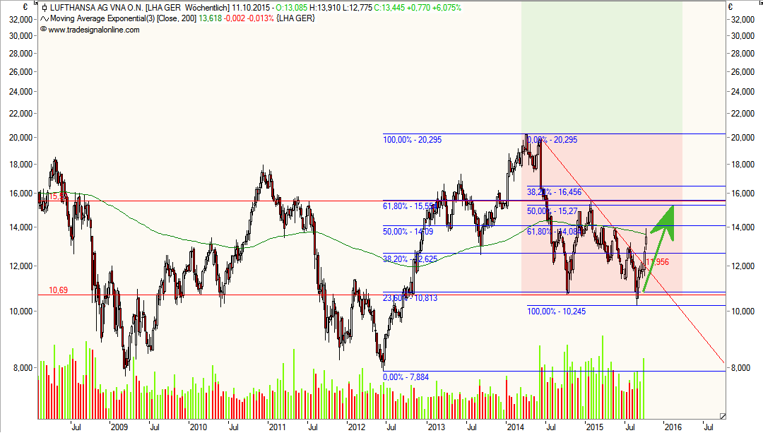 Die nächste charttechnische Hürde wartet bei 15,50 €. Kommt die Aktie nachhaltig darüber, wird aller Voraussicht nach nochmals Kaufdruck aufkommen, der uns zunächst in Richtung 20 € befördern könnte.