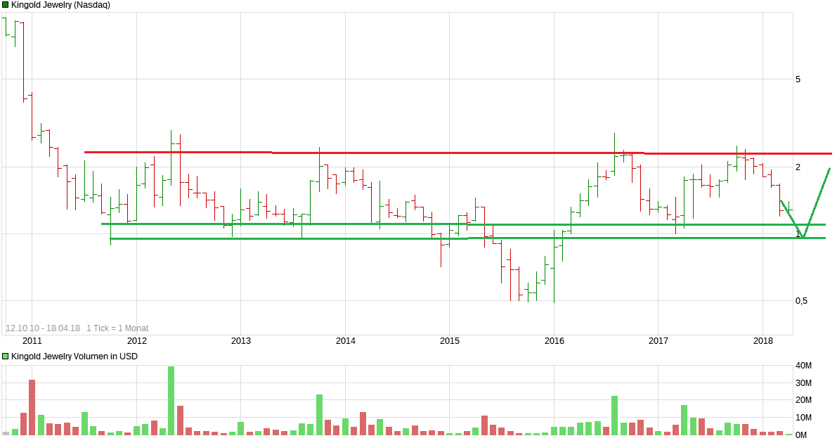Ich habe von Charttechnik null Ahnung. Betrachte eher Umsatz und täglich die Shortseller Aktivität. Im letzten Quartal konnten wir einen starken Anstieg bei Gewinn pro Aktie sehen. CGA muss jetzt innerhalb der nächsten 3 Monate Aktionen unternehmen um den Kurs über 1$ zu pushen, ansonsten droht Delisting von der NYSE. CGA hatte angekündigt das sie Maßnahmen ergreifen wollen um wieder über 1$ zu kommen.