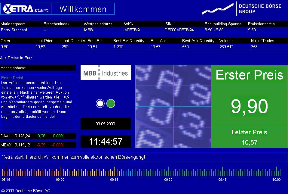 9,80 Euro belief. Der Börsengang der MBB Industries stieß auf großes