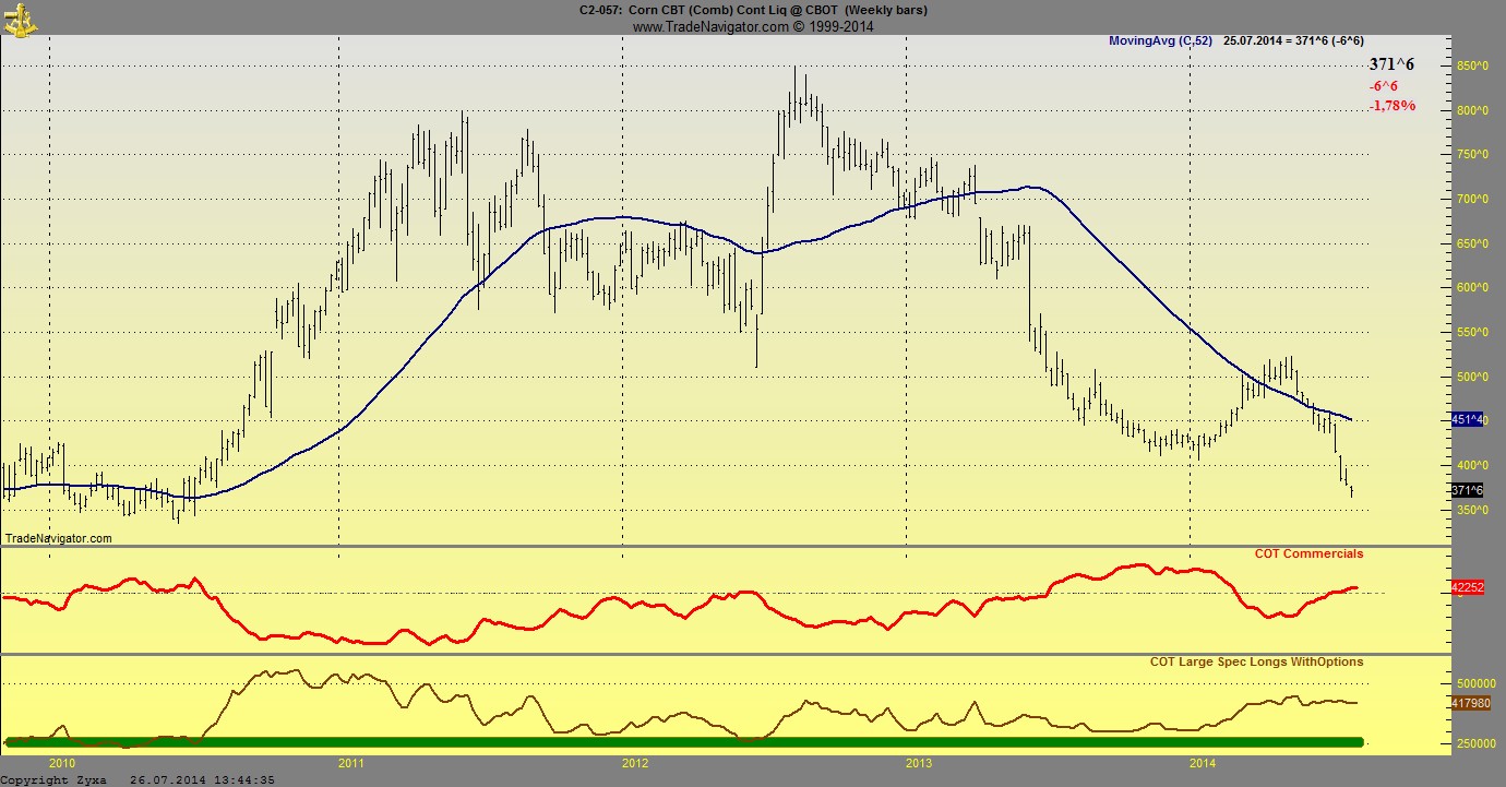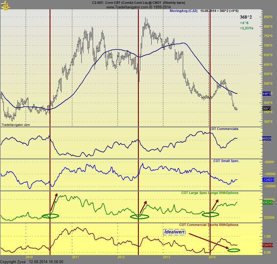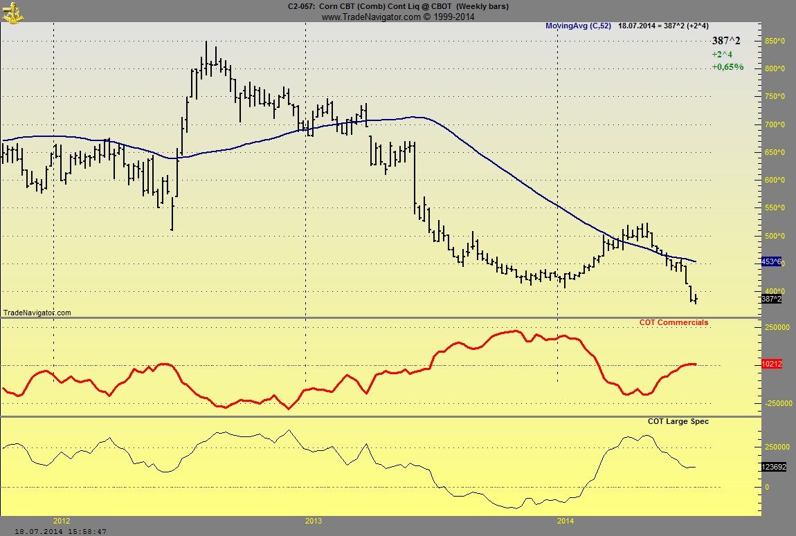 Wie schon oben beschrieben sind die Fonds schon sehr, oder bzw. noch immer sehr stark in Mais investiert, wenn nicht mehr die Large wer soll dann den Preis pushen?....bleiben wohl nur die kurzfristigen Daytrader die mit Unsummen pushen....aber da muss wirklich die breite Öffentlichkeit eine echte Mais-Not erkennen.......das werden wir sehen, wenn plötzlich der Mais Chart extreme Volumina auf Tagesbasis verzeichnet.
