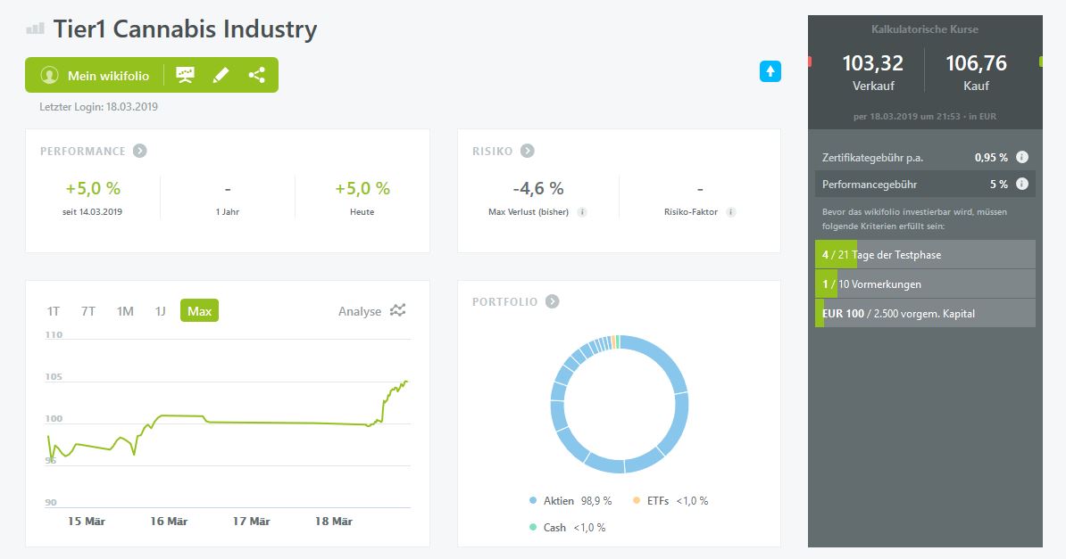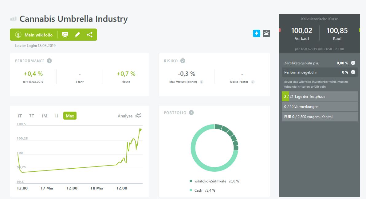 aktuell beteht ein mir bekanntes Dach-Wikifolio für die Cannabis-Branche ohne Handelszulassung