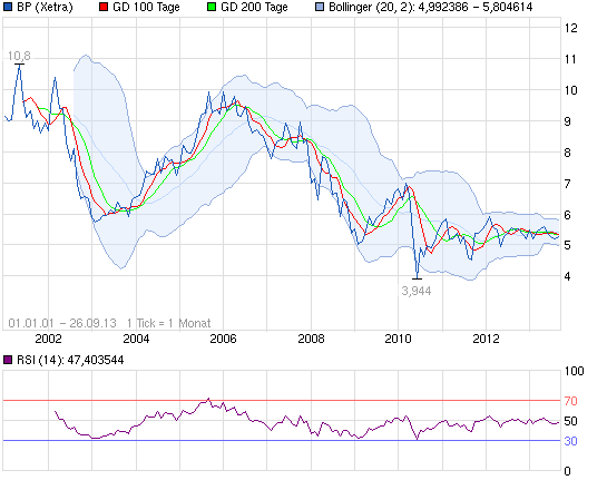 Momentan ist sie etwa mit 110 Mrd. Euro bewertet. Nach der abschließenden Aufarbeitung der Ölkatastrophe sind mit Jahresüberschüssen von über 20 Mrd. Dollar zu rechnen, falls nichts unvorhergesehenes passiert. Selbst im vergangenem Jahr lag der Jahresübeschuss bei 11,6 Mrd. Dollar. Die fast doppelt so grße Exxon Mobile ist allerdings mit über 500 Mrd. Dollar bewertet, also dem Fünffachen!