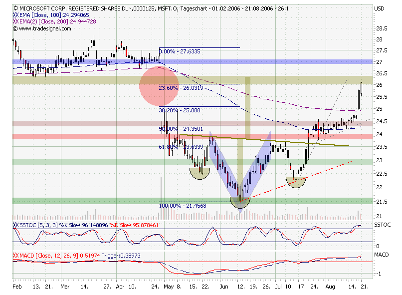 Weitere Kursgewinne über die jetzigen hinaus halte ich bei MSFT für schwieriger. Angesichts der Vista-Einführung 2007 sind sie aber nicht ausgeschlossen.