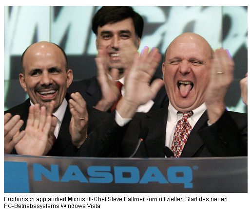 Am kommenden Donnerstag läutet Microsoft-Chef Steve Ballmer an der Nasdaq in New York "A New Day for Business" ein. Mit großem Aufwand wird der Lenker des weltgrößten Softwarekonzerns die um Jahre verzögerten, neuen Versionen der wichtigsten Microsoft-Produkte Windows und Office vorstellen.