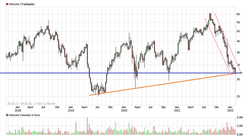 Mittwoch kommen die Zahlen für 2021, wichtiger für mich ist der Ausblick 2022/2023...denke Umicore ist gut aufgestellt.