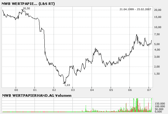 Sollte sich MWB nächste Woche verdoppeln und tatsächlich auf 15 Euro steigen, dann frage ich mich: Wo steht MWB in einem Jahr? Bei 25 Euro? Bei 35 Euro? Bei 50 Euro???
