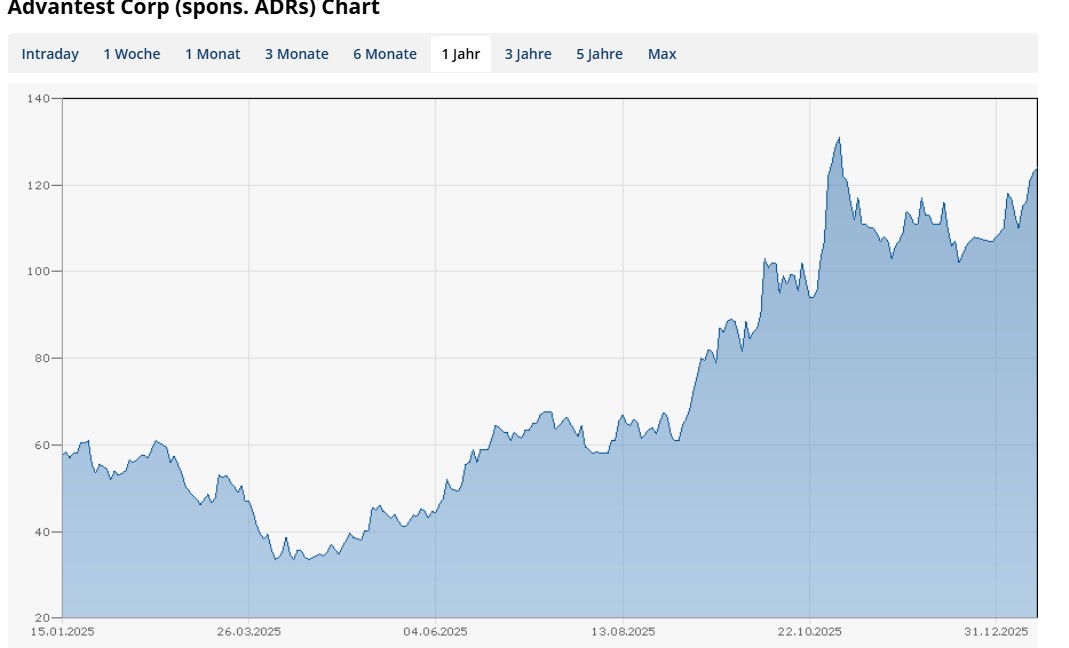 ChartsNewsAnalysen Advantest veröffentlicht voraussichtlich am 28.01.2026 auf der all-dreimonatlichen Finanzkonferenz die Zahlen zum am 31.12.2025 abgelaufenen Jahresviertel.