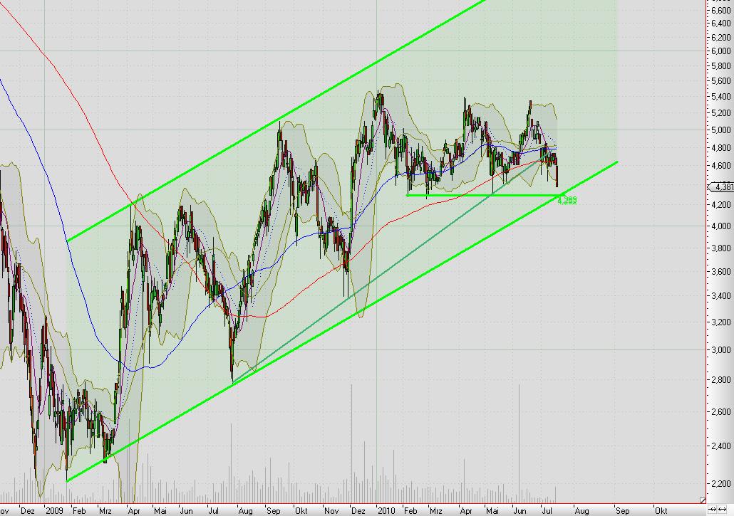 Hallo allegro7 hallo an alle, genau so sehe ich es auch, dieses Unterhmen ist sehr gut positioniert, hat sehr viel EK, auch gute Zahlen haben sie herausgegeben. Nur: existieren in der Tat einige, die diese Aktie für einen Spotpreis verkaufen wollen. Ich sehe den Kurs auch bei 7 €! Jedoch steht es gerade unter 4,40 € ich sage einfach unglaublich dazu. Mal schauen, ob da irgend ein Haken dabei ist, denn gemäß den fundamentalen Gründen sollte die Aktie in Richtung 7 € steigen. Wir werden es im August erfahren, ob die Auftragslage sich gebessert und der Gewinn sich erhöht hat. Wenn das auch der Fall ist, wie zum Beispiel bei der Solar Fabrik AG (90% Umsatzwachstum etc. laut Unternehmen), dann wird diese traurige Zeit ein Happy EndKurs anstreben. Liebe Grüße |