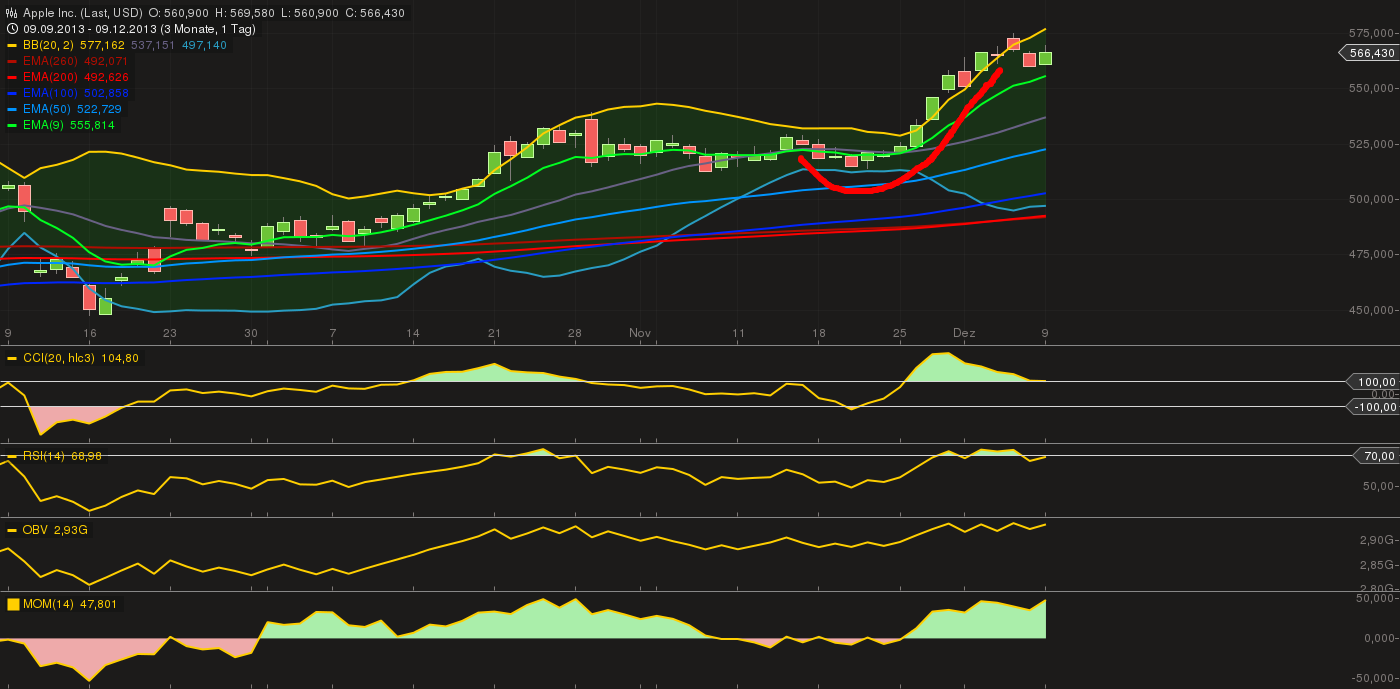 Ziel ist die 613....momentan vollführt Apple einen Flaggentanz um die EMA 9....mit 540 ist zu rechnen, bevor es mit einem weiteren Impuls rauf geht...