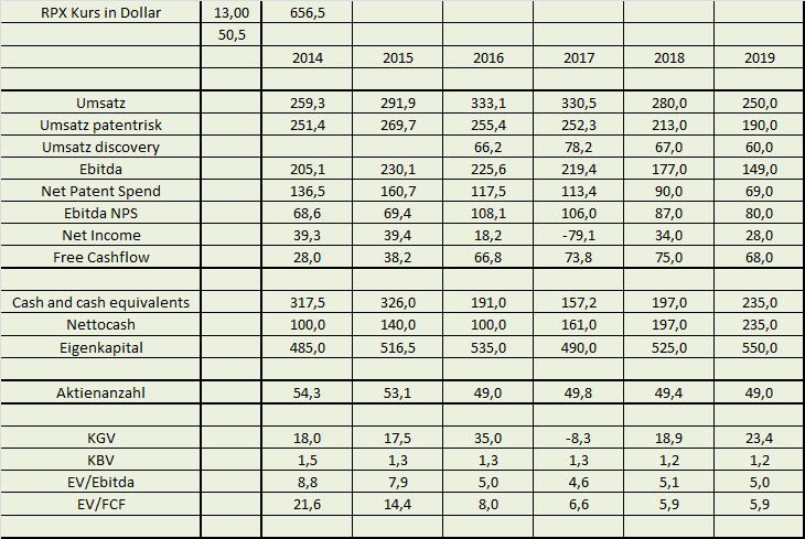 Du könntest also mal fragen, wieso RPX auch in den Staaten so komplett unter dem Radar der Anleger fliegt. Bemüht sich der Vorstand eigentlich um Finanzmarktkommunikation.