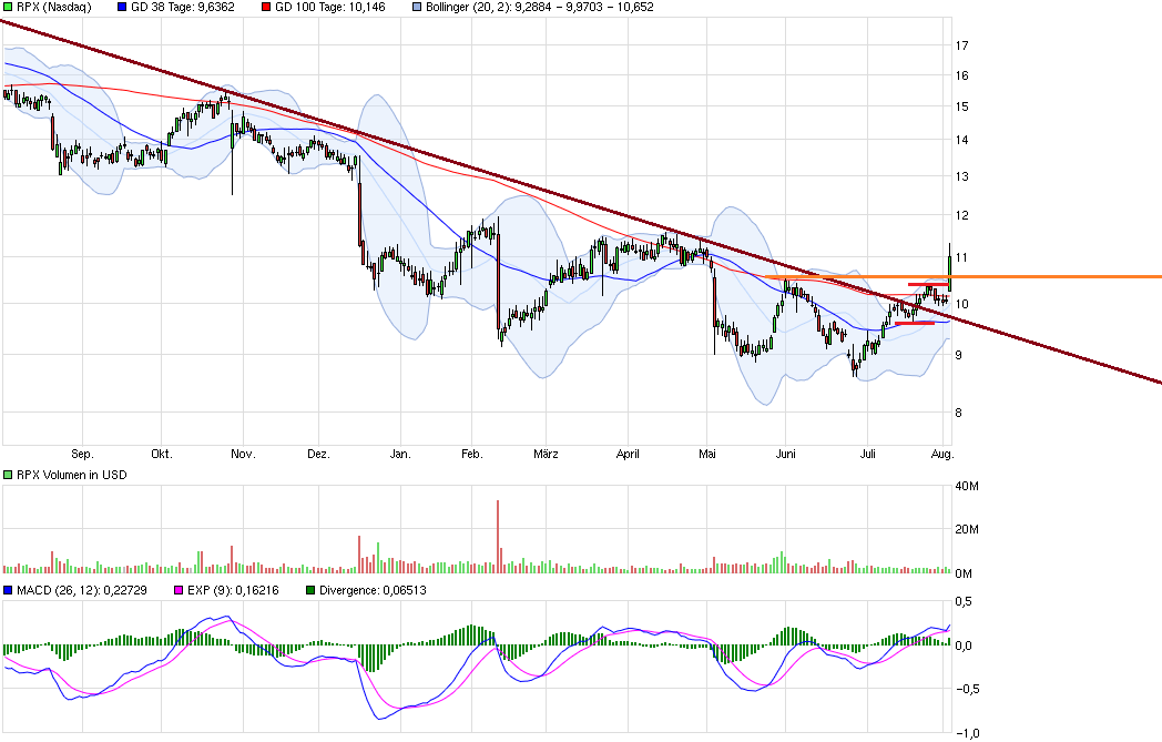 Glaube diesmal nicht an einen Kurssturz, aber die Zahlen dürften auch niemanden vom Hocker reißen. Letztlich bleibt es bei der Investmentthese, dass RPX viel FCF generiert, der dann in den Rückkauf von Aktien fließt. Hier waren sie im letzten Quartal wieder sehr fleißig. ----------- The vision to see, the courage to buy and the patience to hold |