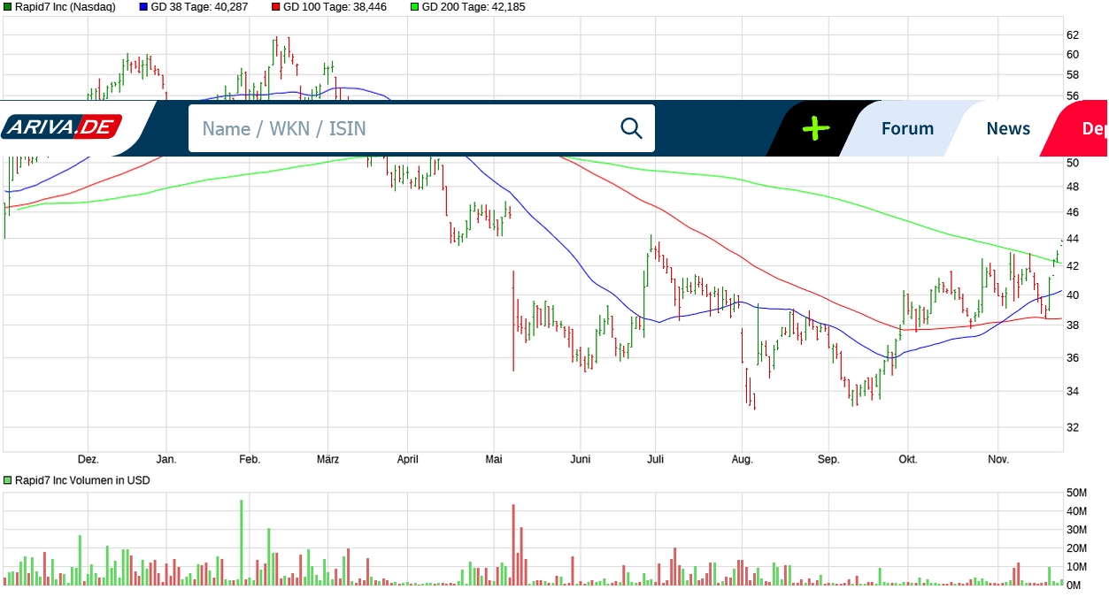 Für das am 30. September abgeschlossene Quartal meldete Rapid7 einen bereinigten Gewinn je Aktie von 66 Cent, gegenüber 56 Cent im gleichen Quartal des Vorjahres, bei einem Umsatz von 214,65 Millionen US-Dollar, was einem Anstieg von 8 % gegenüber dem Vorjahr entspricht. Beide Zahlen lagen über den von Analysten erwarteten 52 Cent je Aktie und dem Umsatz von 210,1 Millionen US-Dollar.