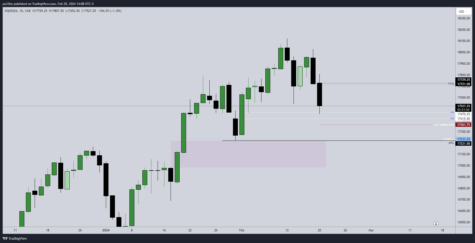 Diese Woche dann noch gern unter 17399 - in die große daily imbalance...
