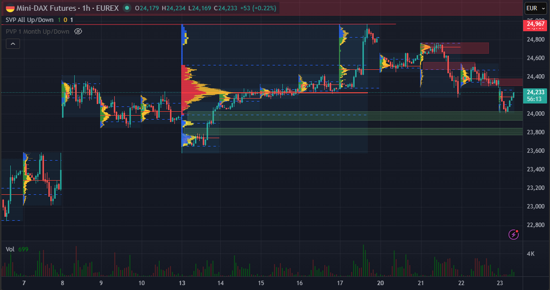 Nach unten haben wir vorerst Support vom Freitags-Shift und darunter im VPOC-Bereich April bei ca 24160-350.