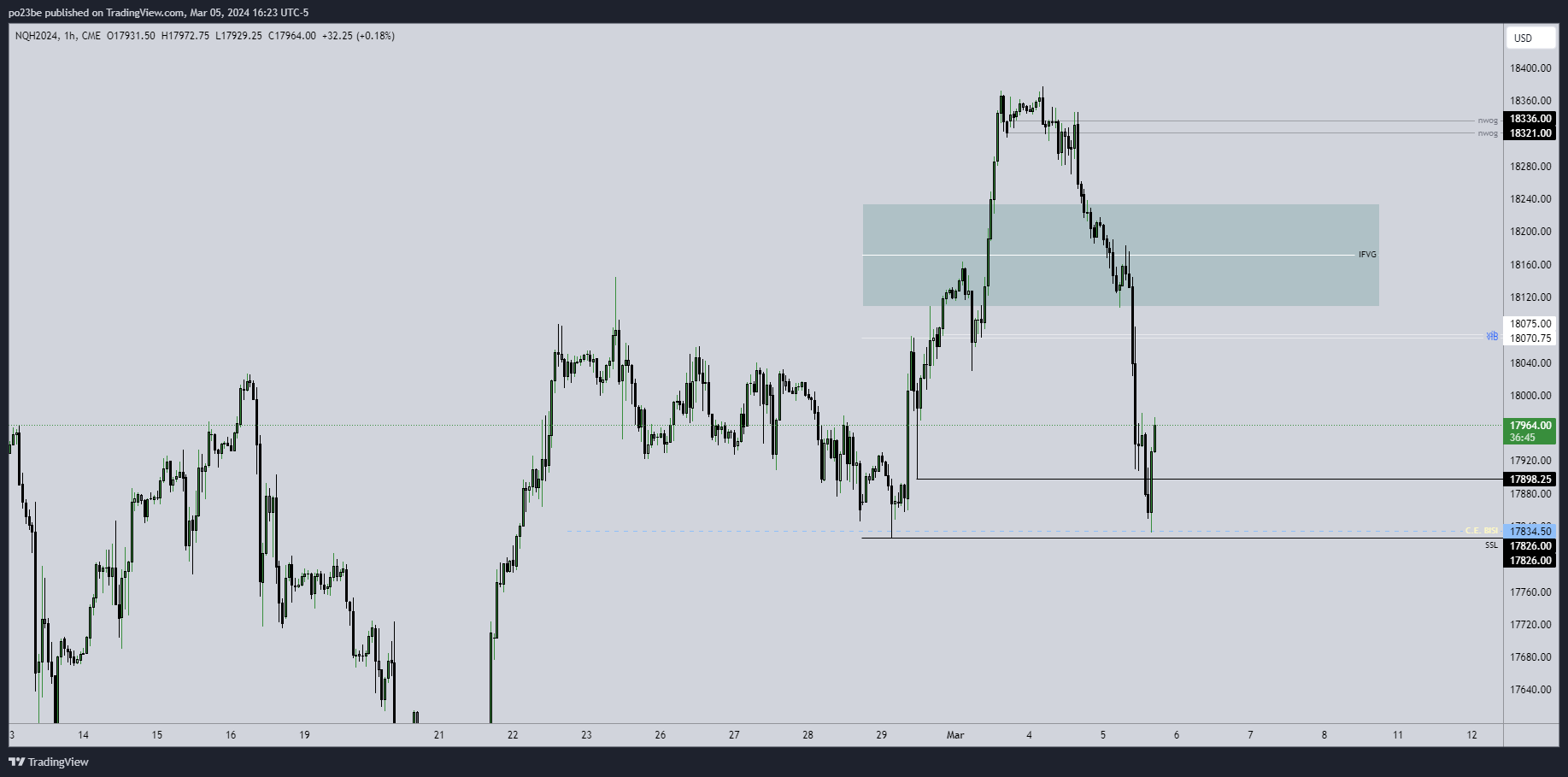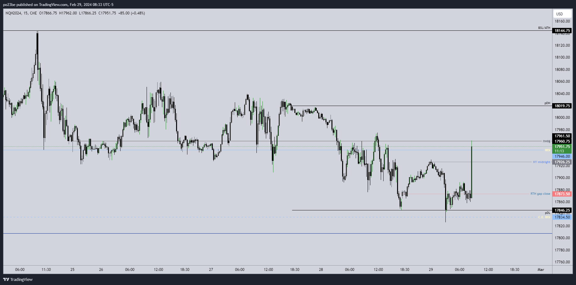 im NQ denke ich immer noch, dass das ATH bei ~18145 der nächst größere "draw on liquidity" ist.