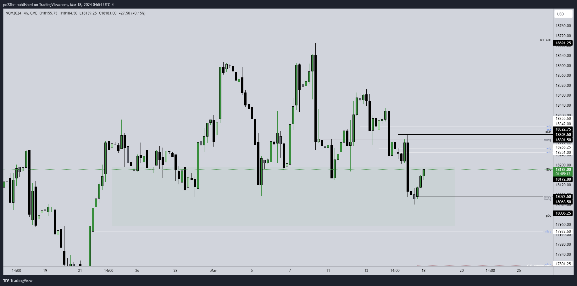 Ist gerade in einem bullisch daily FVG, es gibt aber am Top einen breaker block.   Er könnte auch hier in das 4 bzw 1 std FVG und dann runter. Falls es anders kommen sollte, bin ich raus. Bin für tiefere Kurse demnächst.