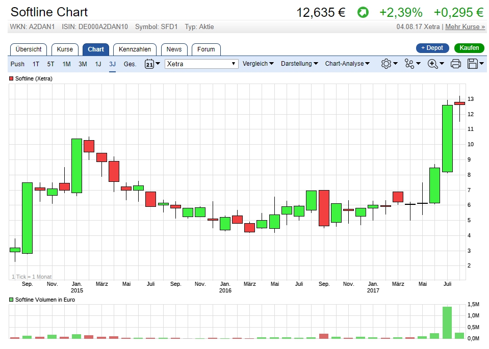 Wenn man genug Kapital hat, ist die Technik eigentlich ganz einfach. Man leiht sich Aktien von Sofline und verkauft stückchenweise immer billiger. Da bei Softline die tägliche Stückzahl zumeist sehr gering ist, reichen da schon einige Zehntausend EUR, um den Kurs nach und nach zu drücken. Dazu kommt, dass dabei die Stopp-loss anderer Anleger ausgelöst werden, was dieses Szenario unterstützt und den Kurs weiter fallen lässt. Dann, wenn der Kurs auf Tiefstand ist, geht der ehemalige Leerverkäufer hin und kauft im großen Stil zu einem geringen Kurs die Stückzahl Aktien viel billiger zurück, als er sie verkauft hat. Der Leerverkäufer rechnet, so wie wir alle, damit, dass mit den Quartalszahlen der Kurs Ende November wieder steigen wird. Vermutlich sogar bis 13,50EUR. Da der Leerverkäufer sich nun schön zwischen 8 und 9 EUR eingedeckt hat, ist das eine schöne Marge, nicht wahr? Er gibt die geliehenen Aktien an den Makler zurück und streicht den Gewinn aus den Preisdifferenzen ein.