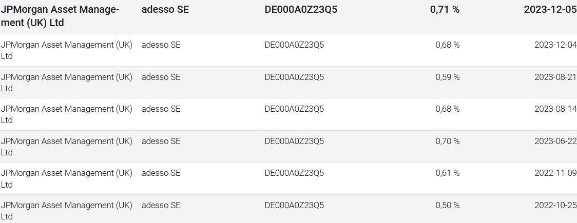die Position ist nicht neu, jedoch leicht aufgestockt, evtl. um zu verunsichern ...  ich rechne bei adesso mit einem starken Comeback, m.E. ein sehr gutes Unternehmen.