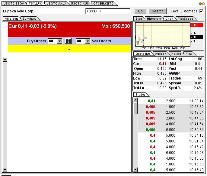 Heute startet zudem die Europa-Roadshow von Lupaka bei Fondsmanagern und Vermögensverwaltern! Kaufen Sie JETZT am besten in Stuttgart oder Xetra, bevor die Profis einsteigen und den Kurs nach oben treiben. Lupaka Gold ist DIE Top-Empfehlung der Redaktion! Verpassen Sie nicht die Chance Ihres Lebens!