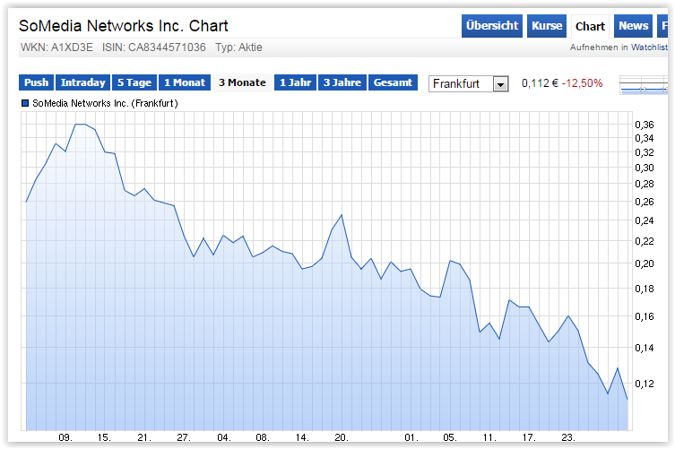Wer sein Geld aber auch nicht vermehren will, der sollte nicht an der Börse handeln.. Der aktuelle Kurs ist einfach ein Witz..sehe aktuell auch nicht viele Risiken, die gegen eine Investion bei Somedia sprechen.. in 2 Wochen werden Zahlen kommen, dann dürften die Deals mit Google und Facebook wohl schon erfasst sein, wenn die Aktie dann 50% höher steht..freue ich mich dann natürlich doppelt... |