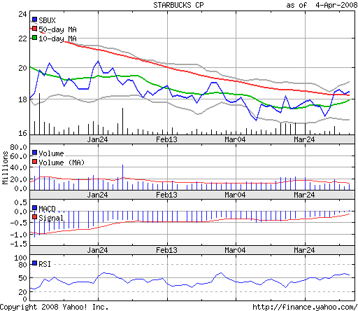 für das Ende März abgelaufene zweite Geschäftsquartal rechnet Starbucks nun mit einem Rückgang des Gewinns pro Aktie auf 15 US-Cent nach 19 Cent im Vorjahr- aber wir sind immernoch gut im Gewinn, also von Rezession keine Rede- der Kurs spiegelt jedoch etwas anderes wieder..