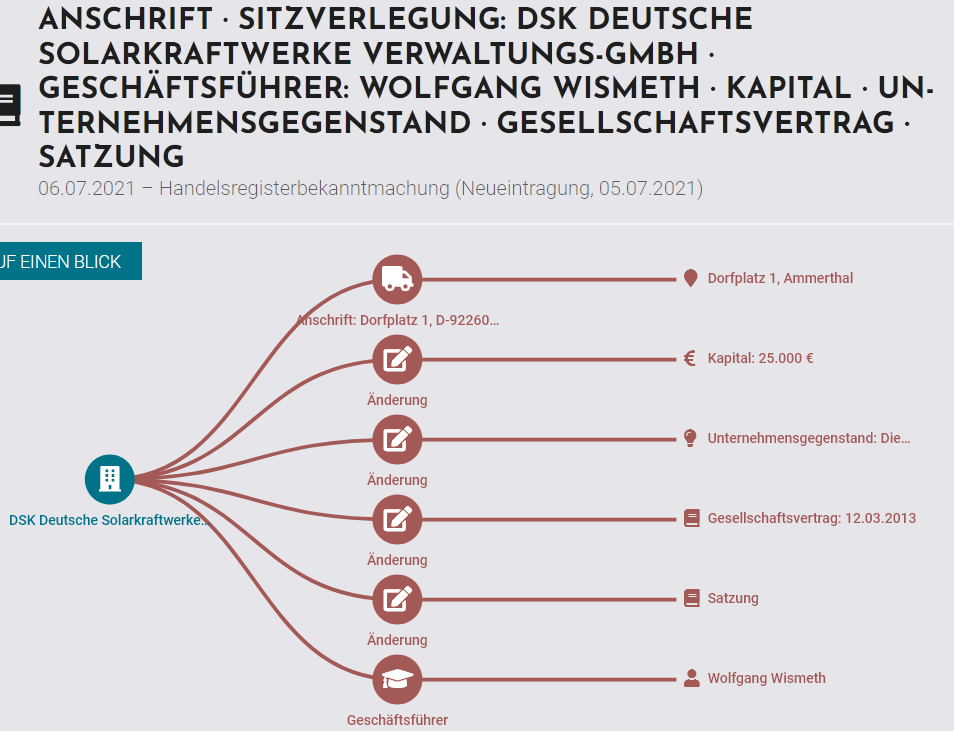 Es wurde nicht nur die Anschrift geändert sondern auch die Satzung / Gs Vetrag , Unternehmenszweck , Kapital und Herr Wismeth als CEO
