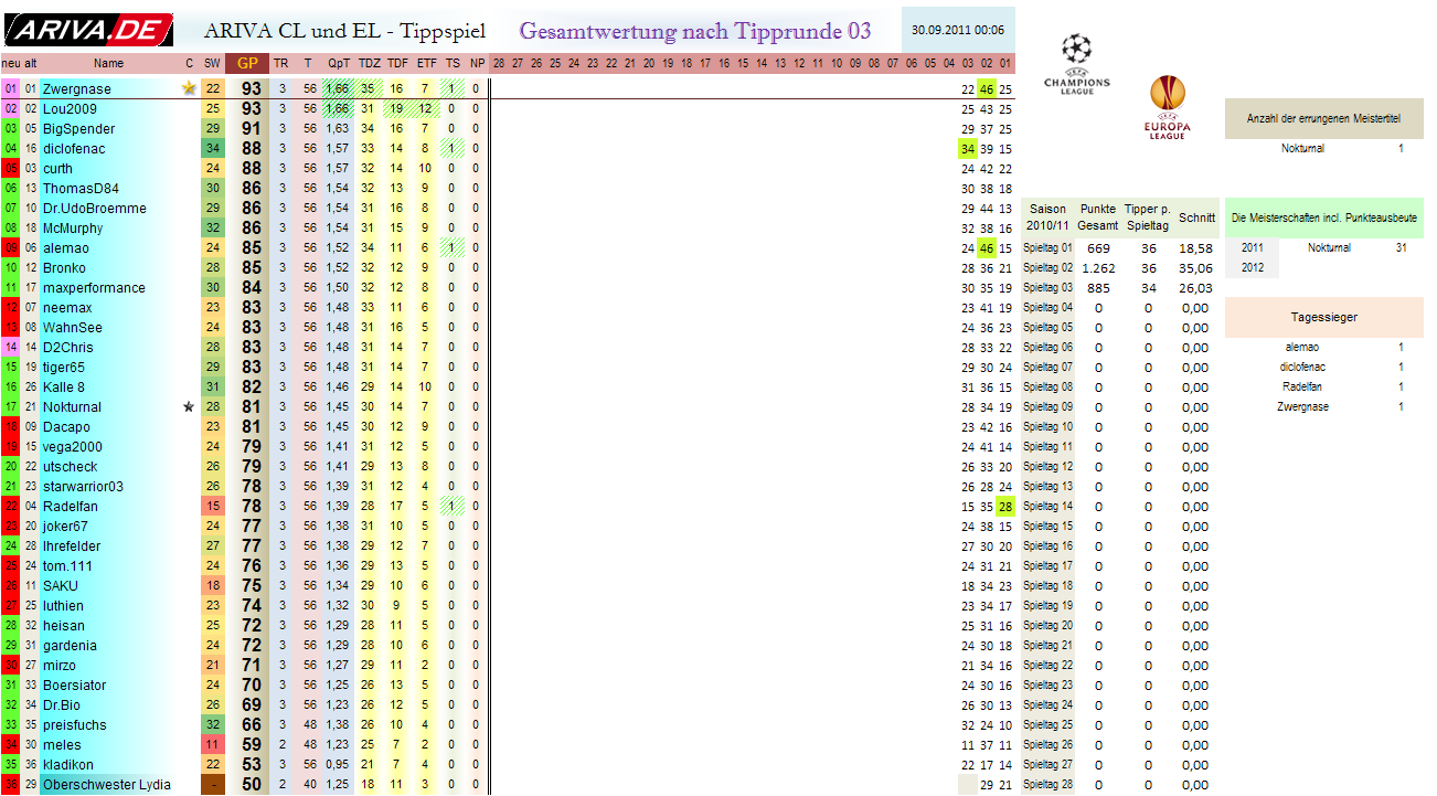 obwohl wir jetzt noch guten Vorsprung ab nächste Saison gegen Italien haben, geht es schon wieder für uns bergab. Wenn unsere so hochgelobten Bundesliga-Überflieger (Mainz ist ja schon weg, genau wie 1x Italien Udine) aus der letzten Saison nicht noch die Kurve kriegen, wird die Saison 2011/2012 punktemäßig eine ganz maue Sache für D!