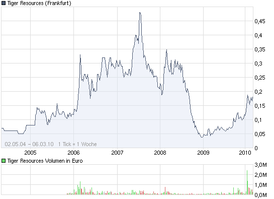 In Bezug auf Tiger Resources erklärt RBC, dass man in dem Unternehmen den zukünftigen Wert eines aufstrebenden Produzenten sehe. Nach Ansicht der Experten könnte Tiger vor einer Neubewertung stehen, wenn in diesem Jahr die Produktion wie geplant anlaufe. Nach der Vereinbarung mit dem Rohstoffhändler Trafigura über eine Finanzierung in Höhe von insgesamt 33,9 Millionen Dollar sei das Unternehmen bis zur für Mitte 2010 erwarteten Produktionsaufnahme durchfinanziert.