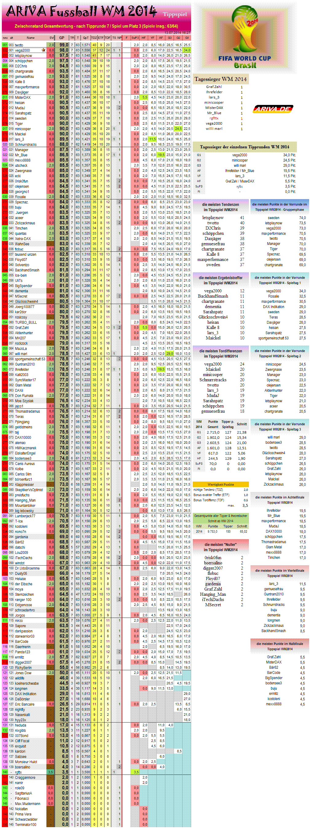 Tippspiel WM2014, SuP3 & Finale