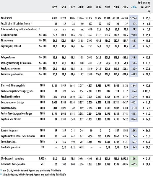 Die UmweltBank im Überblick – Zahlen zur Geschäftsentwicklung 1997 – 2006