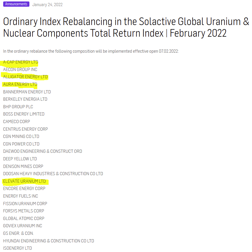 Der ETF hat jetzt seine Neuzugänge bekannt gegeben, aber noch keine Gewichtungen. Ein Neuzugang ist wichtig weil ich den stark im Depot habe Elevate Uranium.Ansonsten dürfte auch der SPUT sehr star profitiert haben.