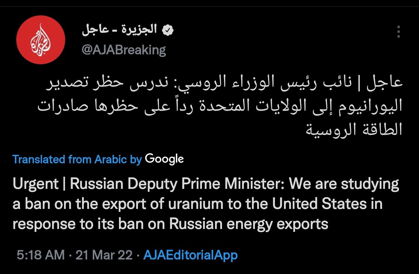 Reports that Russian Dep.PM Novak says Moscow considering banning exports of #uranium to US increases the chance of US-initiated nuclear fuel sanctions, as US will not want to appear reactive and will want diplomatic gain for its energy pain.