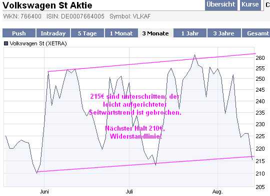 #225 210€ sind durchbrochen, Seitwärtstrend nicht m.