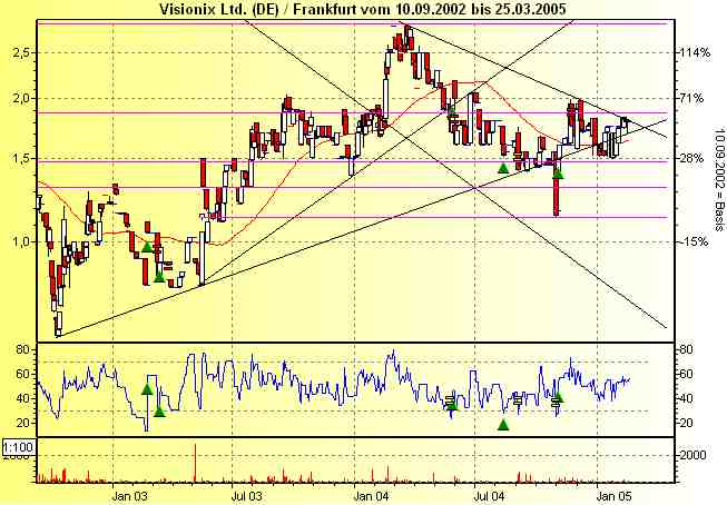 Die israelische Visionix sei 1996 von dem französischen Physiker Marc Abitbol gegründet worden. Das Unternehmen vertreibe eine neuartige, selbst entwickelte Technik, mit der innerhalb von Sekunden optische Gläser und Linsen fehlerfrei vermessen werden könnten. Die Aktienemission sei Anfang 2000 zu 18 Euro erfolgt und habe eine fulminante Handelseröffnung mit Kursen um die Marke von 45 Euro gefeiert. Recht viel mehr habe der Kurs nicht mehr zulegen können, ehe es in den darauf folgenden Jahren stetig abwärts gegangen sei. Über die letzten beiden Jahre habe sich die Aktie jedoch wieder gefangen und zeichne für die kommenden Monate nun wieder ein freundlicheres Bild.