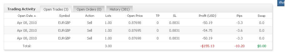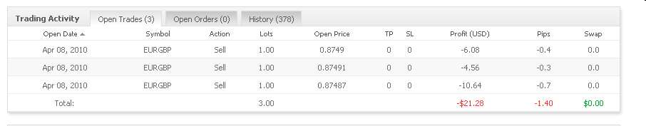 Die Rahmenbedingungen: - Ich trade auf Alpari UK - Ich trade einen Account von 100.000 USD - Ich trade den 1h-Chart - Ich trade nicht jeden, aber fast jeden Tag - der Spread liegt in der Regel zw. 2 -4 Pips - Ich trade die Währungen USDJPY, AUDUSD, EURGBP, EURUSD, USDCAD, GBPUSD, USDCHF - Ich trade 3x1 Lot ausser GBPUSD. Hier trade ich 3x0,5 Lots - Der Entry erfolgt immer gleichzeitig mit 3x1Lot, der Exit erfolgt in der Regel stufenweise - Alle Trades haben einen Stoploss, den ich ggf. stündlich nachziehe - Ich trade in der Regel zwischen 7.30 und 20.00 MEZ - Bis auf wenige Ausnahmen werden alle Trades um 20.00 geschlossen. - Kein Trade ist über das Wochenende offen - Ich trade ausschließlich nach eindeutigen technischen Entry- und Exitregeln