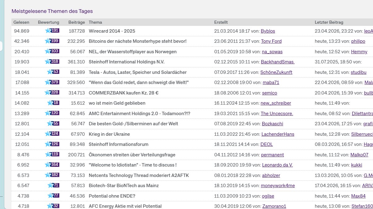 neuester Beitrag: 24.04.26 13:28 von: Meimsteph Leser gesamt: 6902824