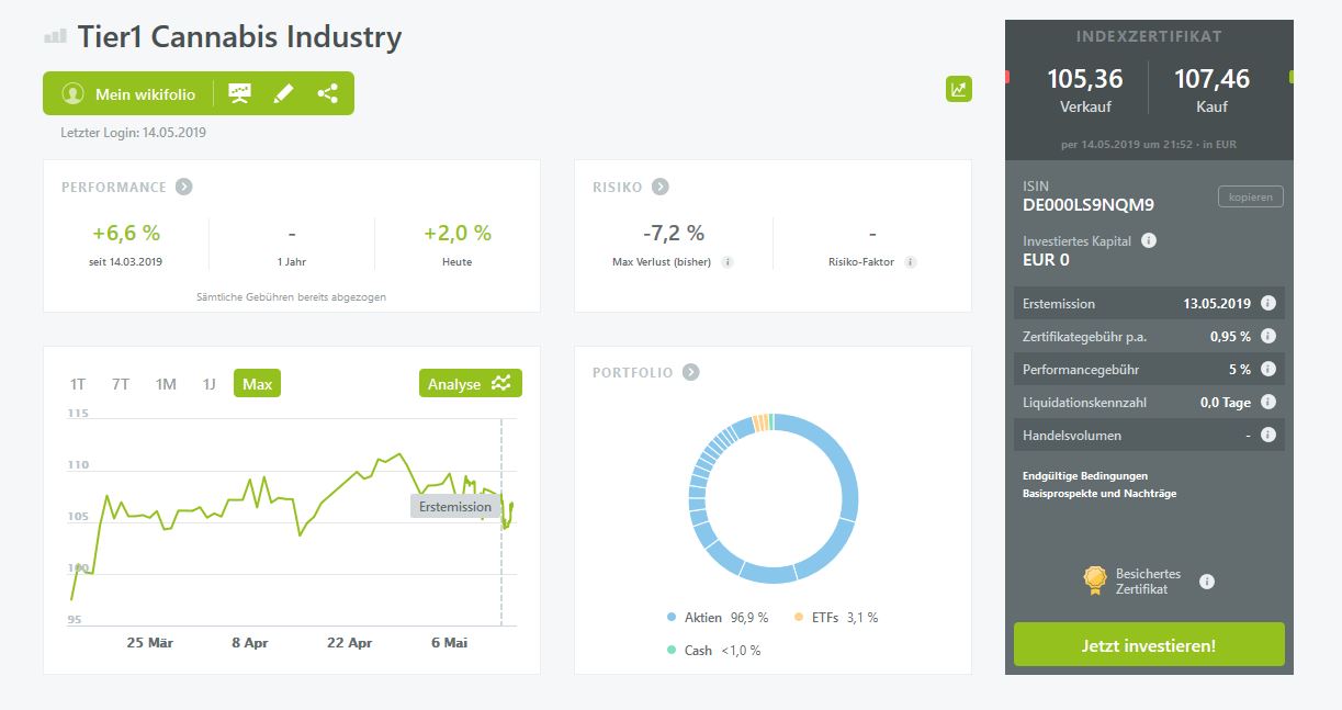 Betroffen sind derzeit das "Cannabis & Cannabinoids Industry" - Wikifolio