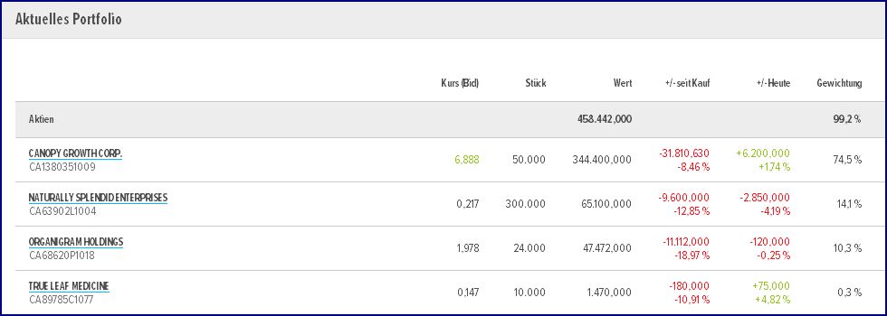 CANOPY GROWTH CORP. , NEU >Stk. 20.500 Gewichtung 33,9 %