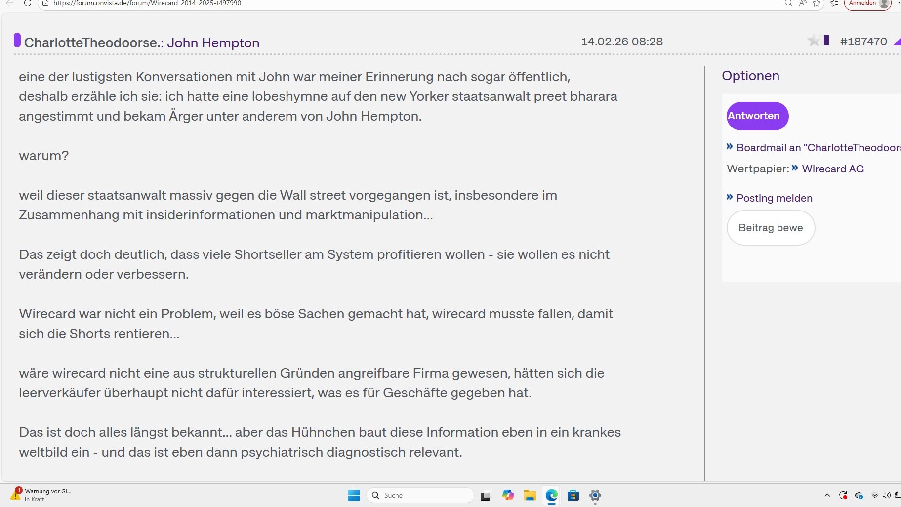 was für ein Interesse besteht in einem börsenforum an einer Beschäftigung mit wirecard?