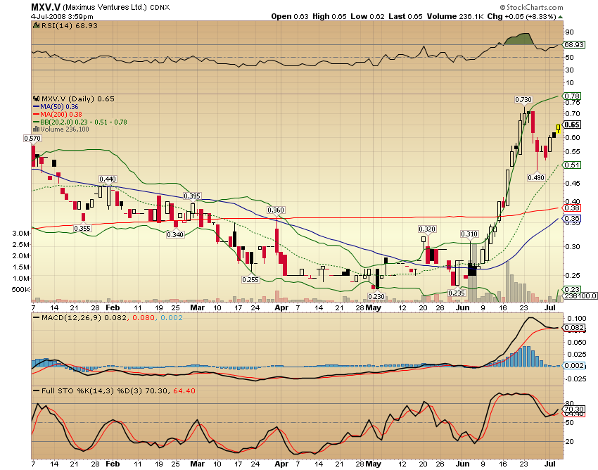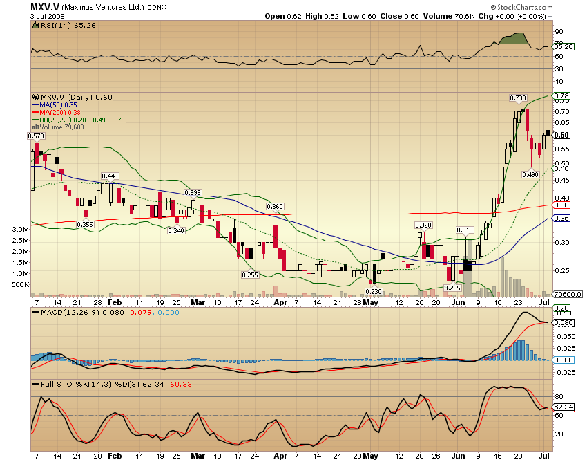 LONGUEUIL, QUEBEC--(Marketwire - July 14, 2008) - Maximus Ventures Ltd. ("Maximus") (TSX VENTURE:MXV) is pleased to announce today the beginning of a 3,600m drilling program on its Unity project located in Idaho. The work will focus on testing the lateral and down-dip extensions of historically very high-grade (30 to 150g/t gold) and very extensive (up to 2km long) quartz veins. A first phase of work includes testing two of the richest gold veins, namely the Little Giant and Rescue veins and investigating other gold-rich veins on the property including Charity and Gun Metal. Should the drilling program be successful, a pre-feasibility study to justify the rehabilitation of old workings and additional underground development would then be commissioned?